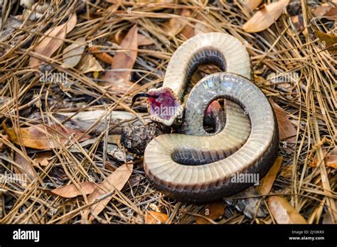 The snake’s playing dead behavior is a unique adaptation that allows it to survive in its environment. When threatened, the snake will emit a foul odor, which is thought to mimic the smell of a dead animal. This smell deters potential predators and gives the snake time to escape.